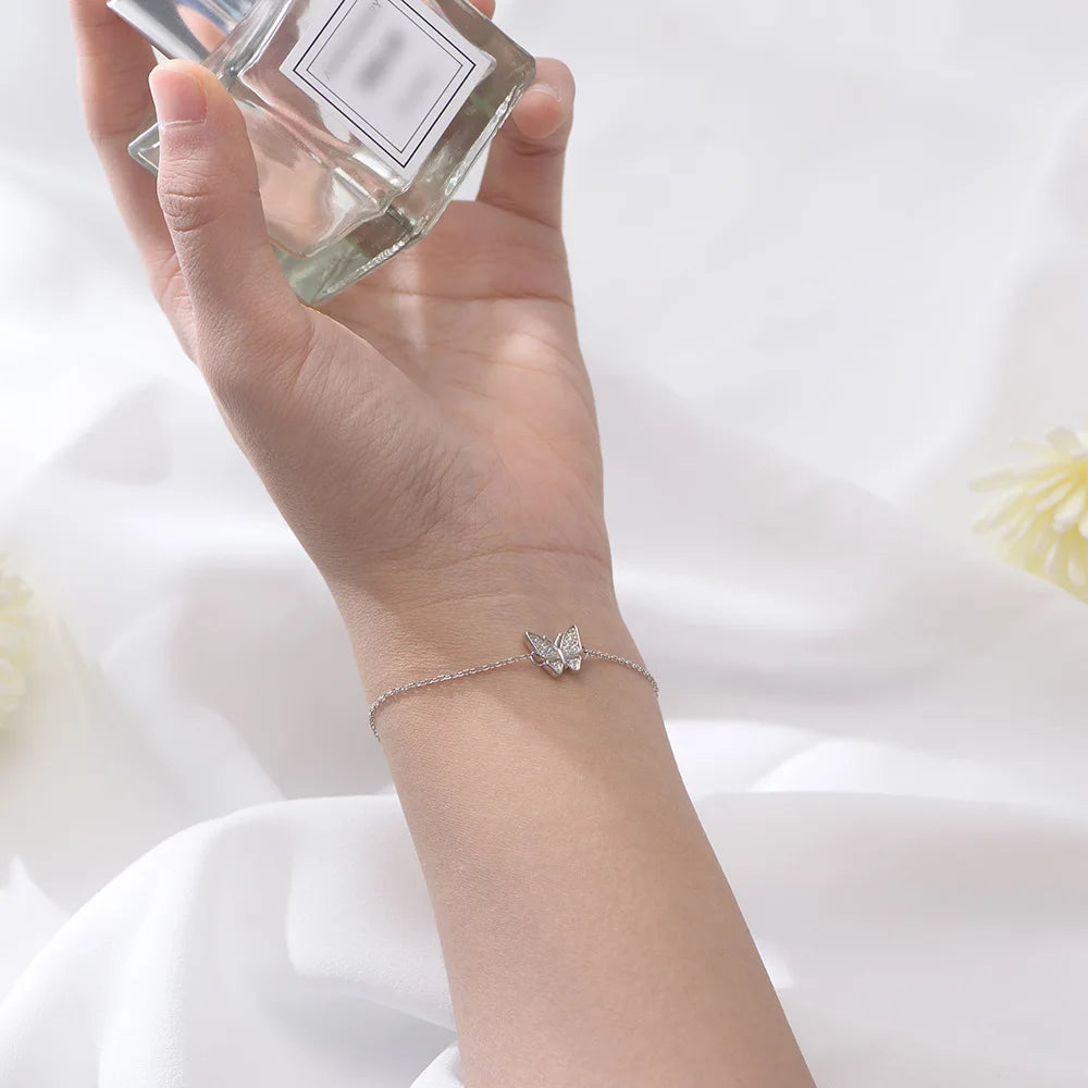 Delicate, graceful, and timeless — the Elara Butterfly Charm Bracelet captures the beauty of transformation through minimalist design. Crafted from S925 sterling silver and finished in your choice of rhodium or 18K gold plating, this dainty charm bracelet features a finely detailed butterfly centerpiece on an adjustable chain. Lightweight and elegant, it’s perfect for layering or wearing solo for a subtle statement of style.